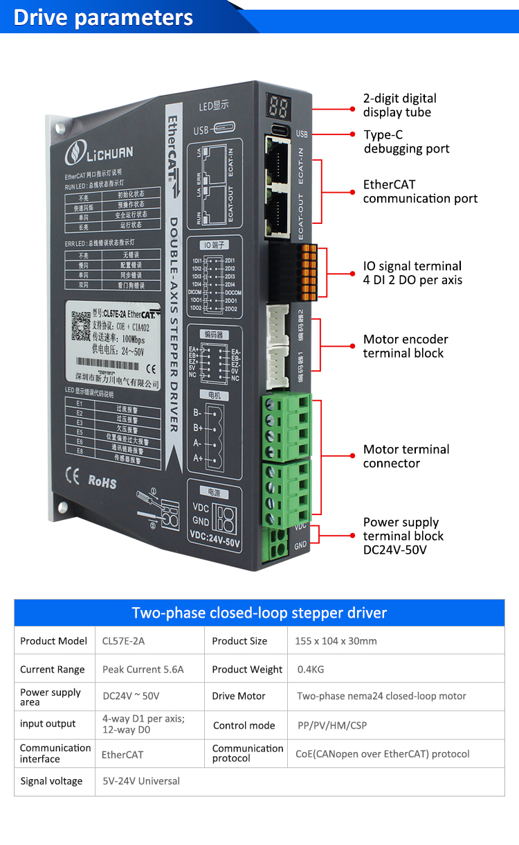 EtherCAT 2Phase Nema23 2-Axis DC बन्द लूप स्टेपर मोटर ड्राइभर किट