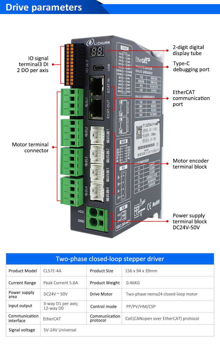 EtherCAT 2Phase Nema17 4-Axis DC बन्द लूप स्टेपर मोटर ड्राइभर किट
