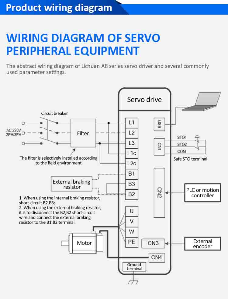 दLichuan A8 उच्च सटीकता STO ABZ AC सर्वो मोटर ड्राइभर किटनिम्न विनिर्देशहरूको साथ पूर्ण सर्वो प्रणाली समावेश गर्दछ: