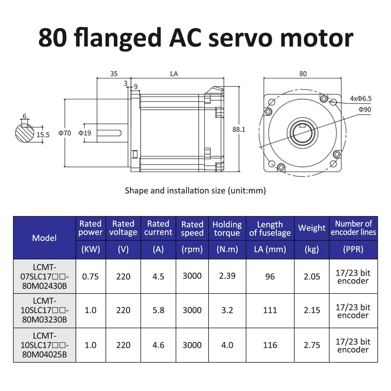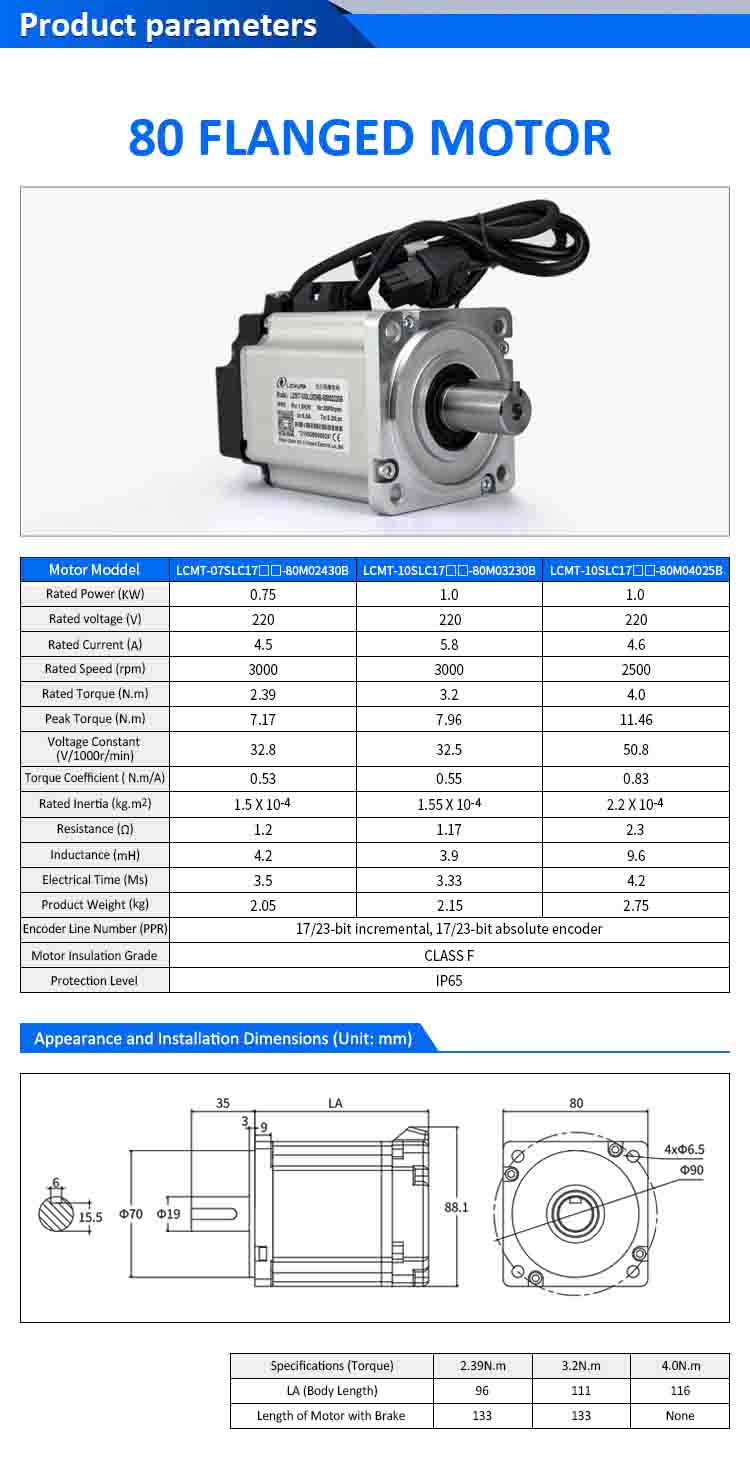 | मोटर मोडेल | LCMT-07SLC17-80M02430B | LCMT-10SLC17-80M03230B | LCMT-10SLC17-80M04025B |